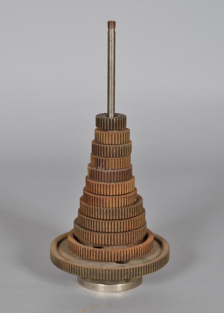 Sett af tannhjólum á standi, til að stilla hraða á rennibekk