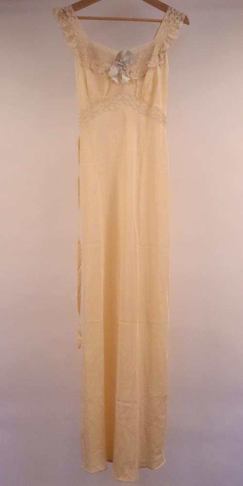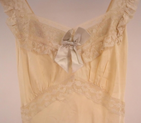 Náttkjóll. Þunnt silkikennt gerviefni. Vélsaumur. Slaufan handsaumuð á kjólinn.