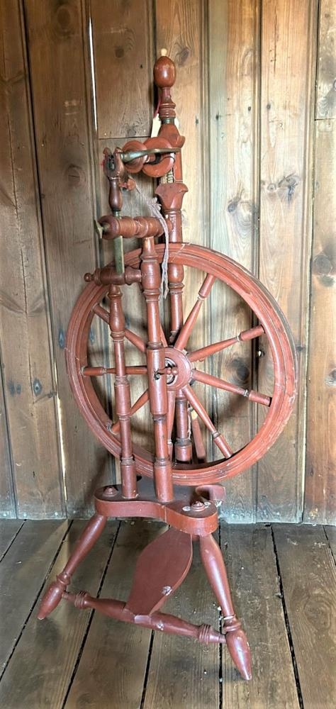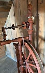 Spunarokkur, málaður rauðbrúnn, vönduð smíði, málmur á hjóli.