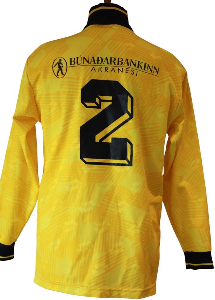 ÍA-peysa með auglýsingu frá Búnaðarbakinn Akranesi á bringu og á baki er merkt númer 2 og Búnaðarbankinn