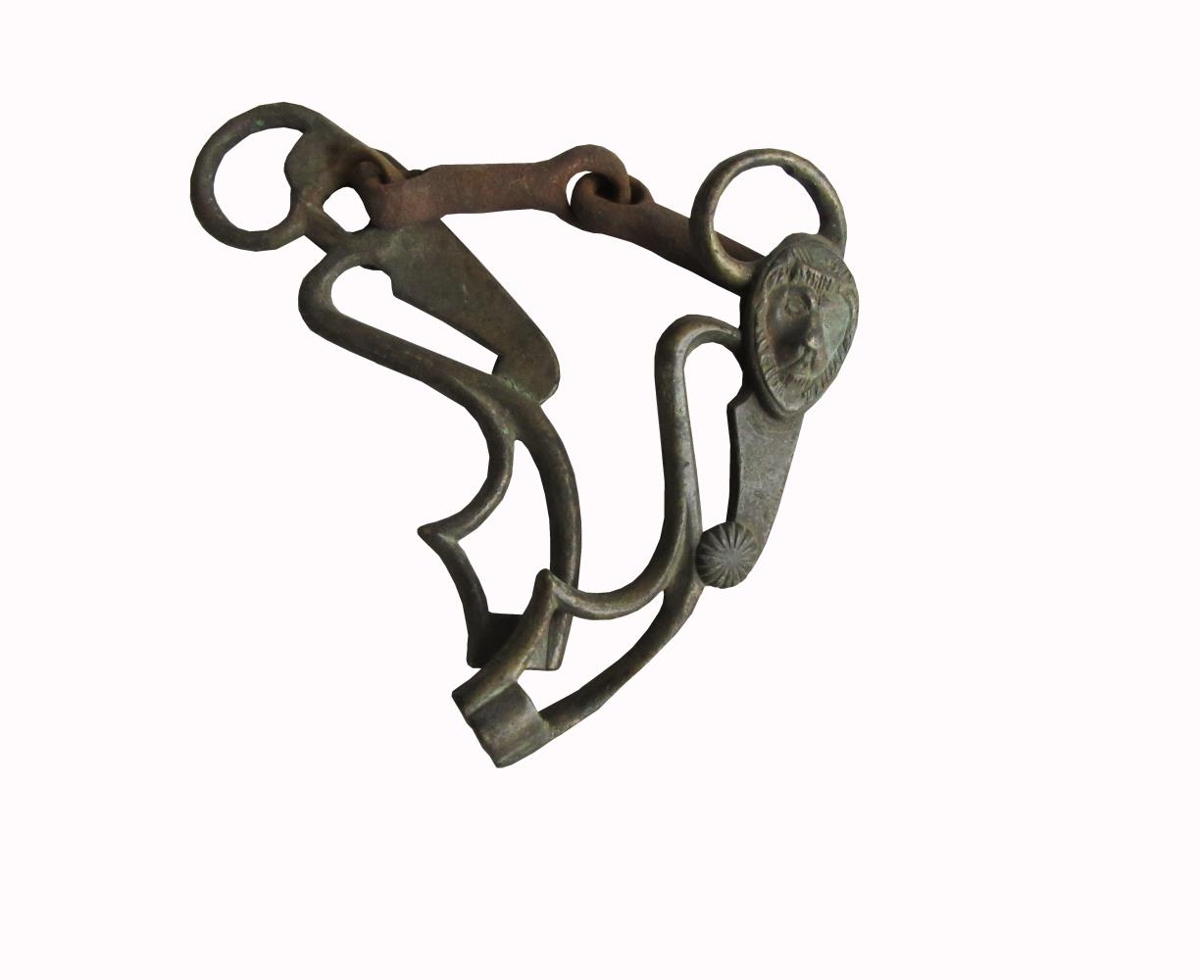 Beislisstengur úr kopar, með einhverskonar ljónshöfði. Gefandi er Ágúst Bjarnason, Urðarbaki í Vestur-Húnavatnssýslu.