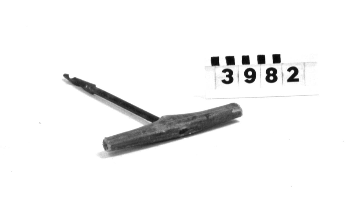 Handnafar með þverhaldi úr tré, lengd á bor 28 sm, lengd á skafti 19 sm.