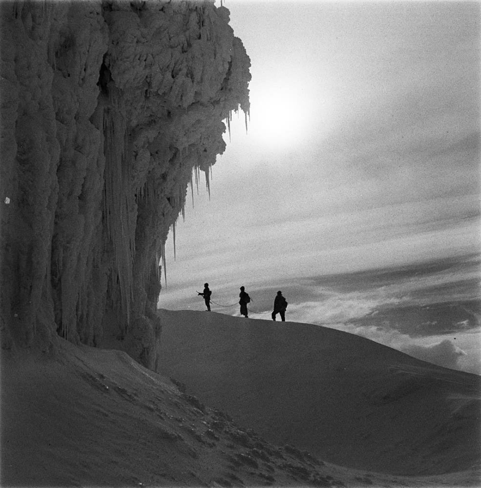 A-Skaftafellssýsla. Óþekkt. Þrír karlmenn ganga á jökli ? Oddur á Skaftafelli ?