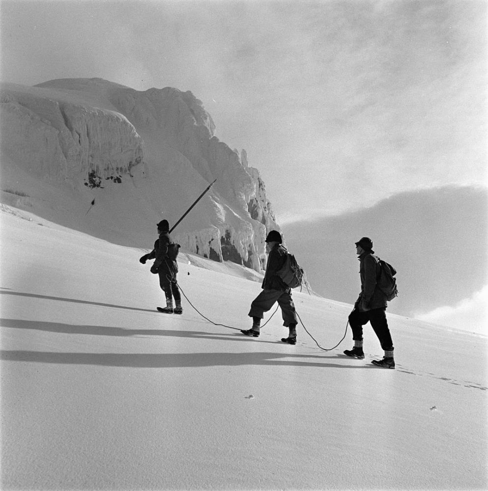 A-Skaftafellssýsla. Óþekkt. Þrír karlmenn ganga á jökli ? Oddur á Skaftafelli ?