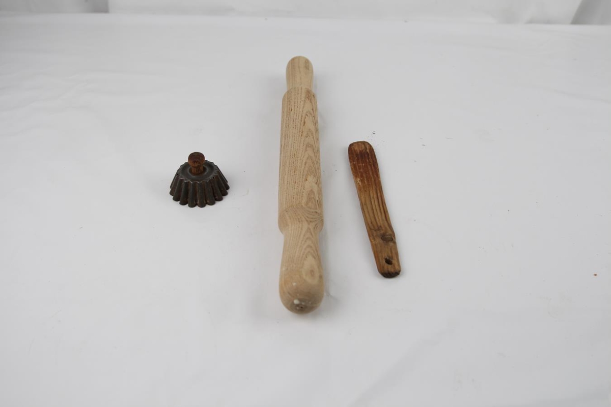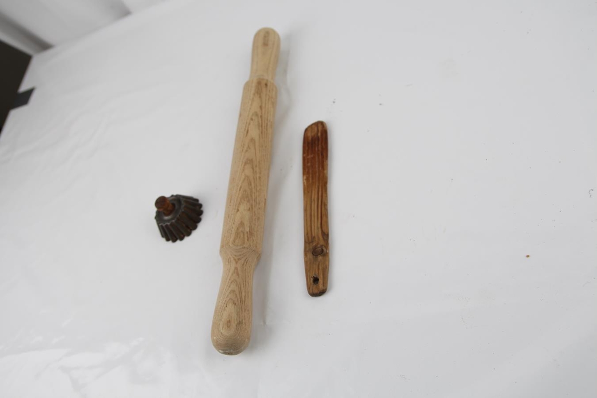 Kökukefli notað af Sigríði Eymundsdóttur 1865- ?, lækjarnesi. Tréspaði sem var notaður var til að hræra í kaffibaunum þegar verið var að brenna þær notað af Sigríði Eymundsdóttur 1865- ?, lækjarnesi. Smákökumót notað til smákökugerðar útskurð.