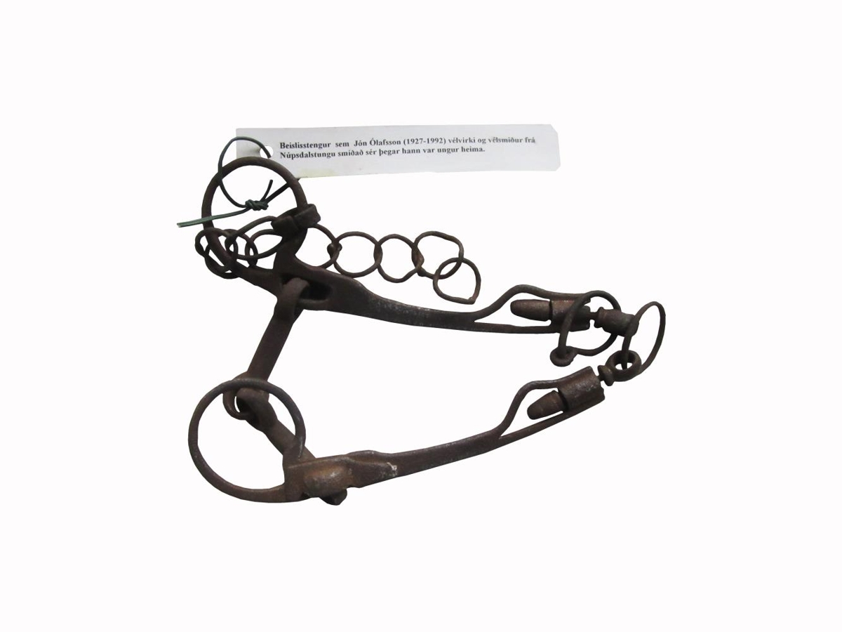 Beislisstengur úr járni sem Jón Ólafsson (1927-1992) vélvirki og vélsmiður frá Núpsdalstungu smíðaði sér þegar hann var ungur heima. Gefandi er Kjartan Ólafsson (1923-2014) í Núpsdalstungu, Vestur-Húnavatnssýsslu.