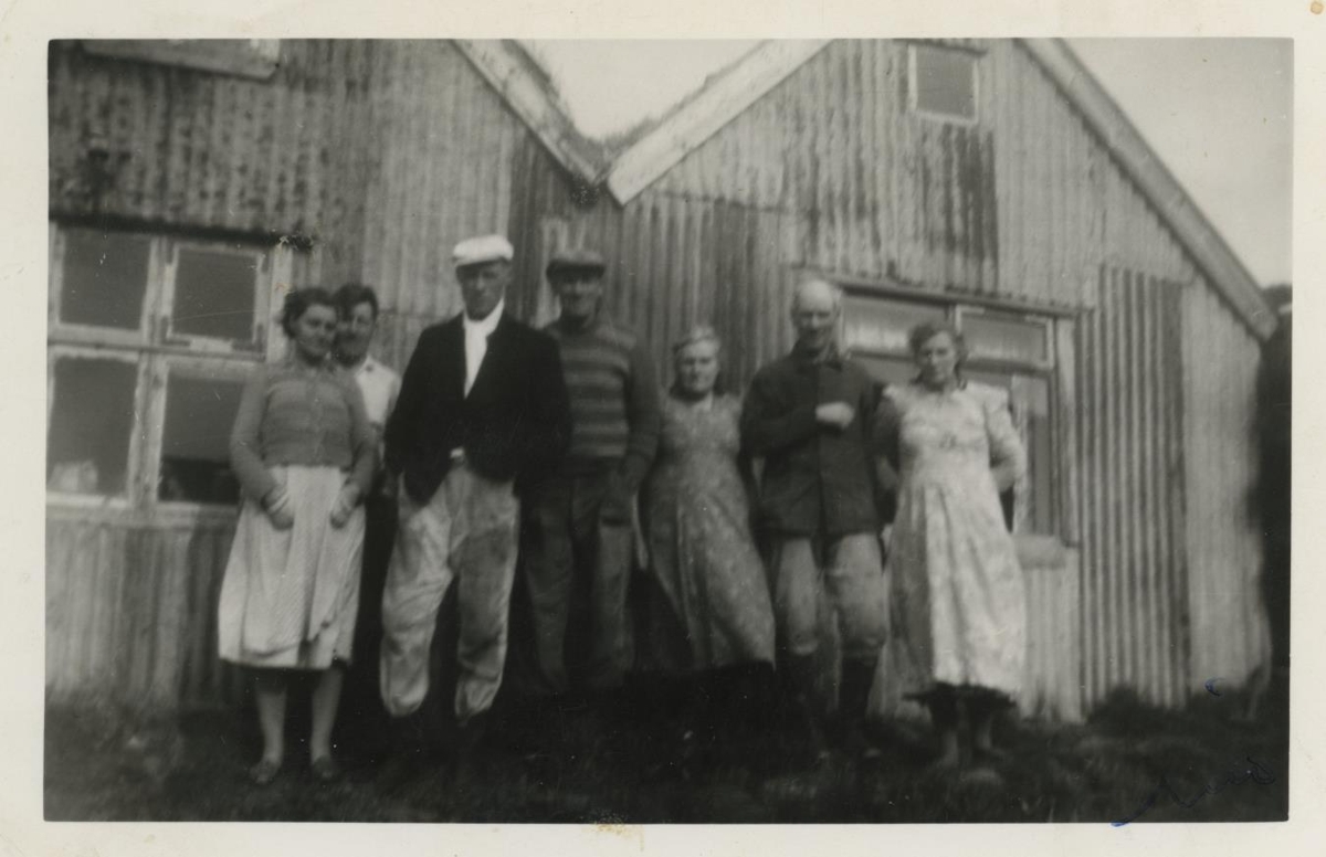 Þuríður Sigurfljóð Ólafsdóttir, Jón Jóhannesson, Kristjón, Kristvin, Sigurfljóð, Guðmundur og Guðfinna Jónasarbörn á Leikskálum í Haukadal.