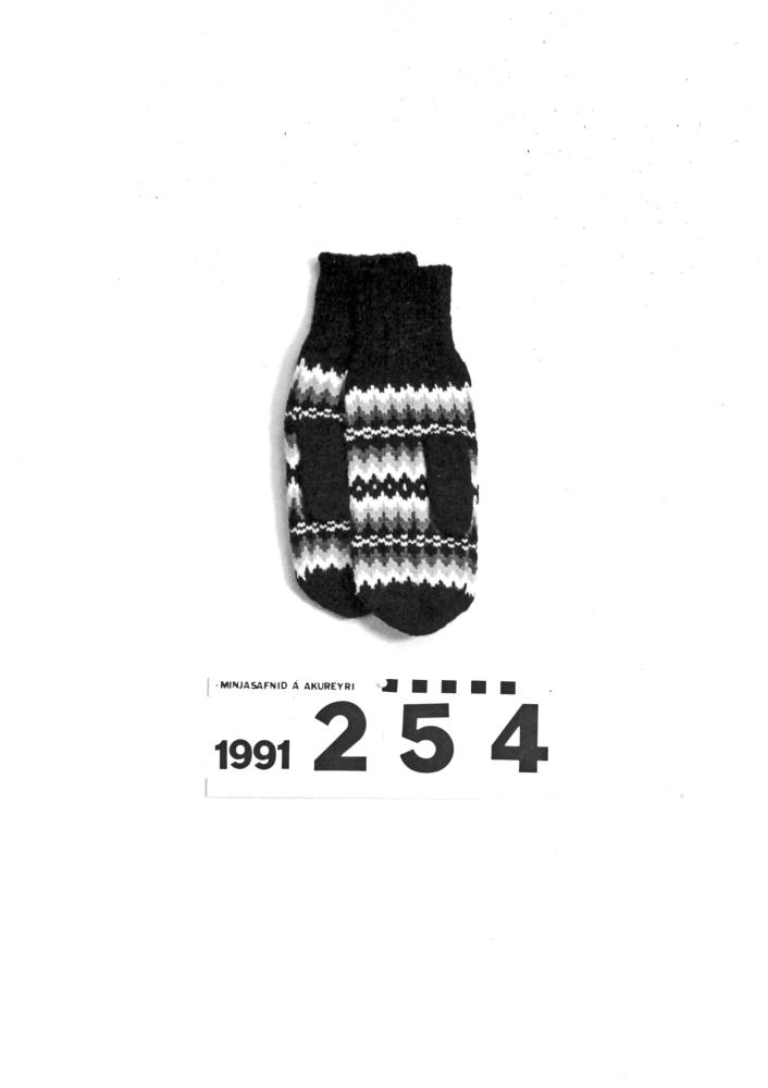 vettlingar með þumli. Í þá eru prjónaðir bekkir úr hvítu og tveim
