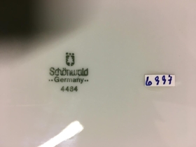 Leirfat, sporöskjulaga, 27 x 18 cm. Schönwald. Með bláu Flugleiðamerki.