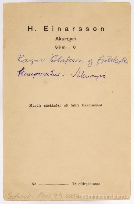 „Ragnar Ólafsson kaupmaður á Akureyri og Guðrún Jónsdóttir Johnsen. Áttu 11 börn þannig að þau eru flest hér.“ (ILB 2021)