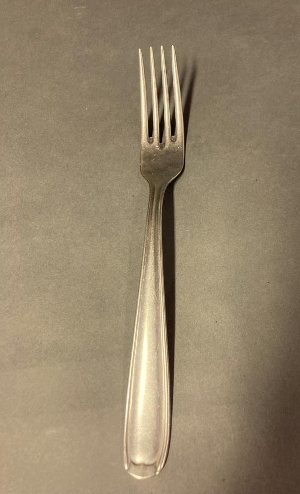 Matgaffall úr eigu Þórunnar Jónsdóttur ljósmóður frá Reynishólum, f. 1889, d. 1979. "Rostfrei-Inox". Komið frá Blönduhlíð 7 í Reykjavík. Var varðveitt hjá Sveini Pálssyni,d 2003.