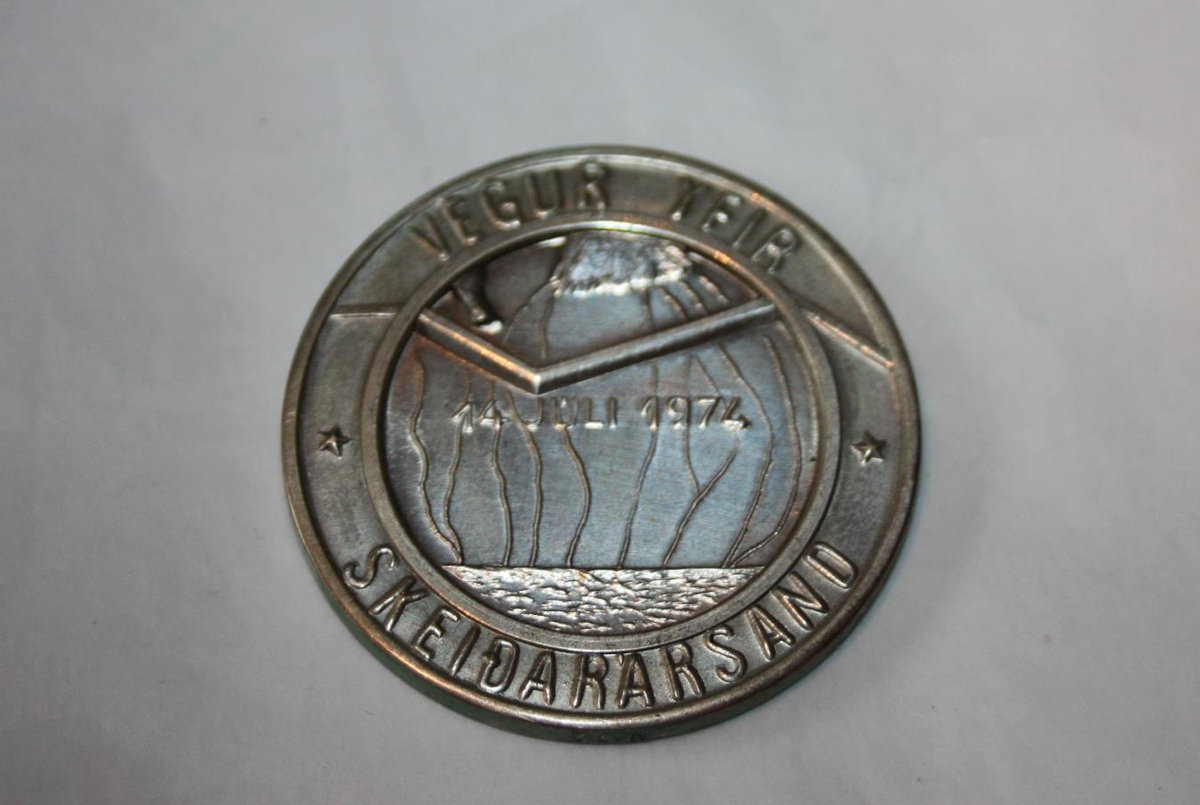 Þessi minnispeningur var búinn til af Þjóðhátíðarnefnd vestur og austur skaftafellsýslna vegna opnun vegs yfir Skeiðarársand.