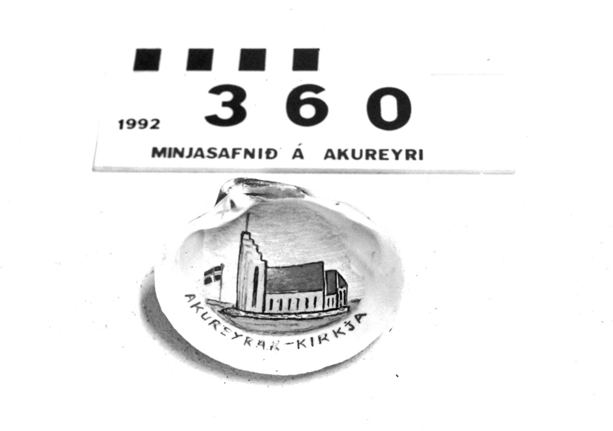 er málað innaní mynd af Akureyrarkirkju og íslenska fánanum. Fyrir