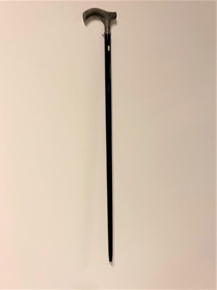 Göngustafur með silfurhandfangi. Áletrun: HARALDUR PÁLSSON 1906-18.2.1976. FRÁ AUSTUR-EYFELLINGUM. Úr dánarbúi Haralds Pálssonar trésmiðs sem vann Eyfellingum af mikilli dyggð um áratugi og fyrir nær ekkert kaup. Hann dó í febrúar 1981.