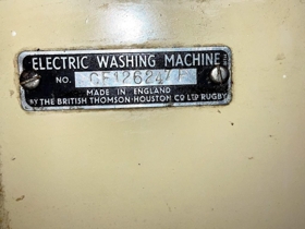 BTH þvottavél með áfastri vindu ca.1960 eða eldra. Electric washing machine. Made in England by the British Thomson Houston co. ltd Rugby.