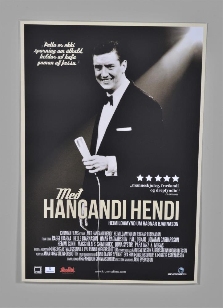 Plakat um heimildarmyndina „Með hangandi hendi“ um Ragnar Bjarnason.
