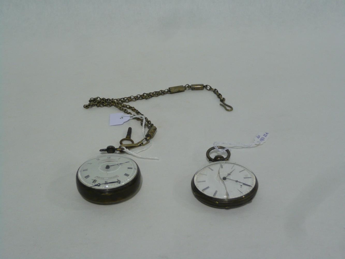 Tvö vasaúr. Gefandinn sagði úrin keypt á Eyrarbakka 1885 á 16 krónur.