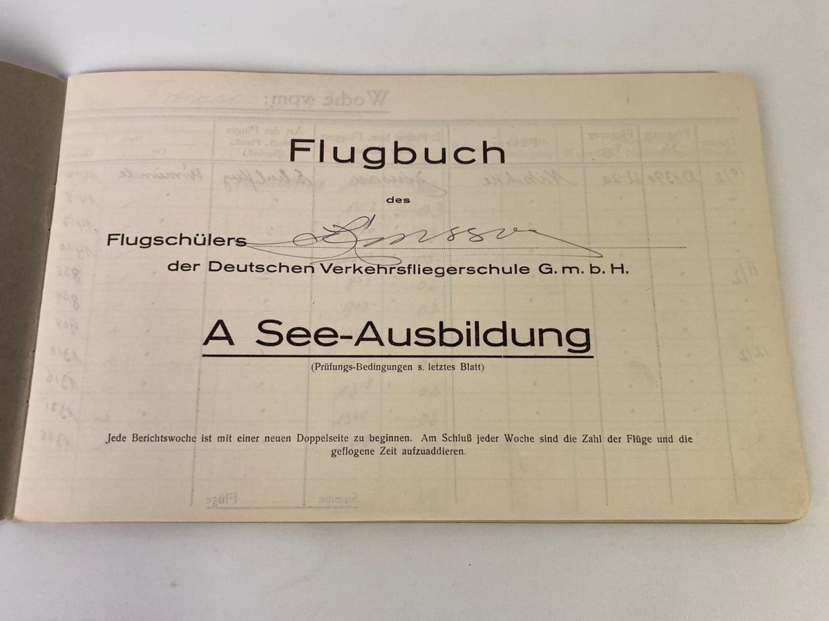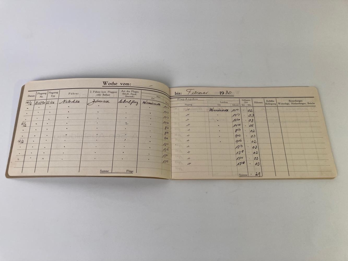 Logbók úr eigu Sigurðar Jónssonar flugmanns, Sigga flug. Bókin er ljósbrún að lit og á henni stendur: “Flugbuch. A See” en krotað hefur verið yfir See og skrifað fyrir ofan “Land”. Í neðra vinstra horni stendur: “D.V.S.” og í neðra hægra horni er bókin merkt Sigurði með hans skrift: “S. Jónsson”. Fyrsta færsla bókarinnar er skráð 10. febrúar 1930 og sú síðasta 13. mars 1930. Um er að ræða skólaflug við flugskólann í Warnemünde í Þýskalandi.