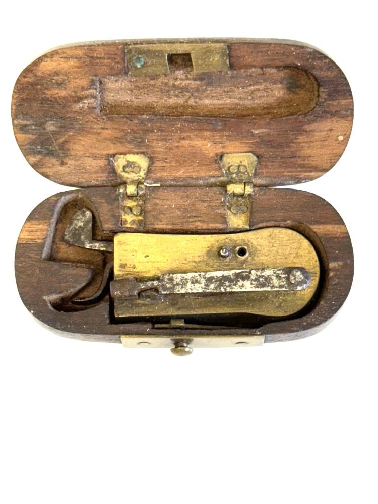 Blóðbíldur, smíðaður úir járni og kopar. Er í vönduðum mahóníöskjum með koparhjörum og tippislæsingu úr kopar, stærð 6,5 x 3 cm. Sneytt úr hornum. Þetta er smíði Kristófers Jónssonar bónda í Vindási. Gefandi Stefanía Guðmundsdóttir, Fífuhvammi 35, Kópavogi.