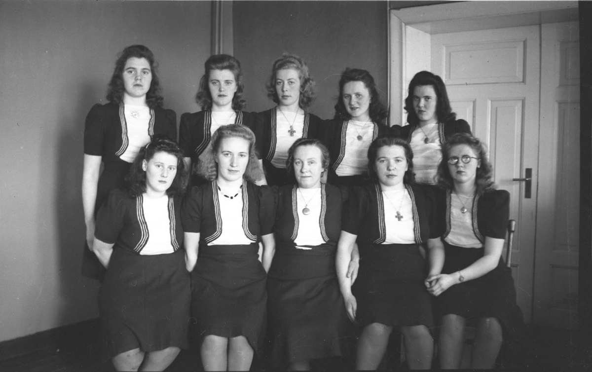 Efri röð frá vinstri. Guðríður Sigjónsdóttir frá Hallgeirsey í A-Landeyjum, ?, Gróa Þórðardóttir frá Eilífsdal í Kjós, Björg Ól. Aðalsteinsdóttir úr Hvallátrum á Breiðafirði og Magnea G. Jónsdóttir frá Geirseyri við Patreksfjörð.