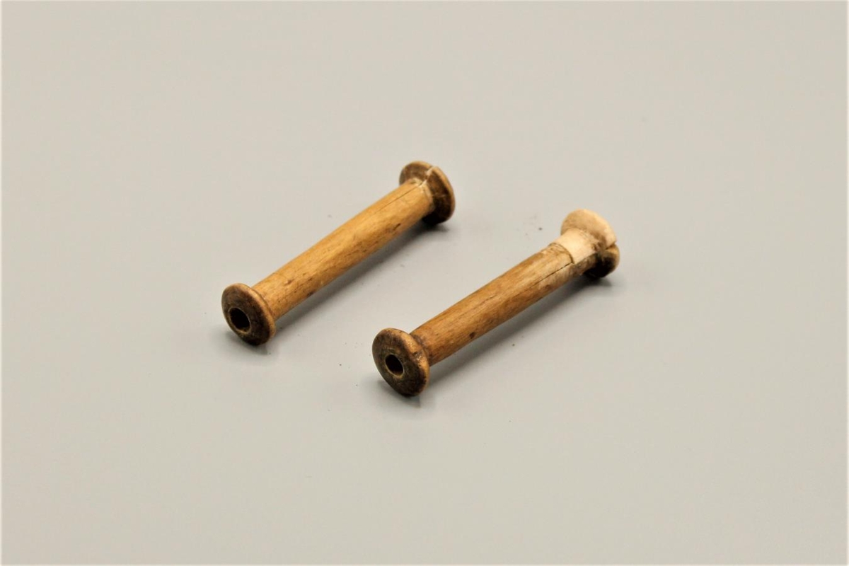 Tvö kefli í vefskyttur smíðaðar af Tómasi Jónssyni í Vallnatúni d. 1918. Eign Þórðar Tómassonar. Lagfært af honum 2004. L: 7 cm.