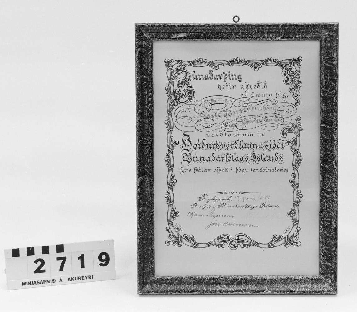 Efnisorð: Verðlaunaskjal, + hlutv.