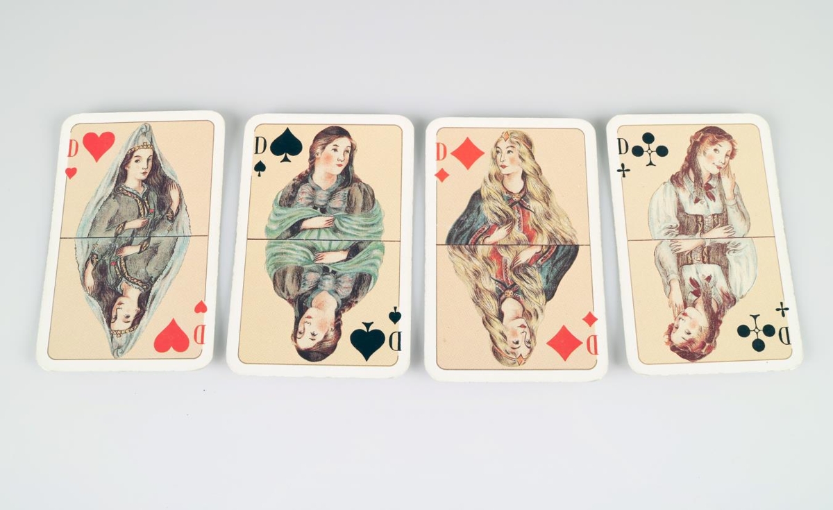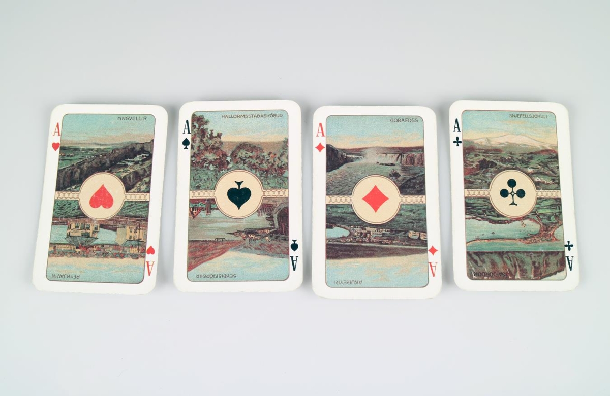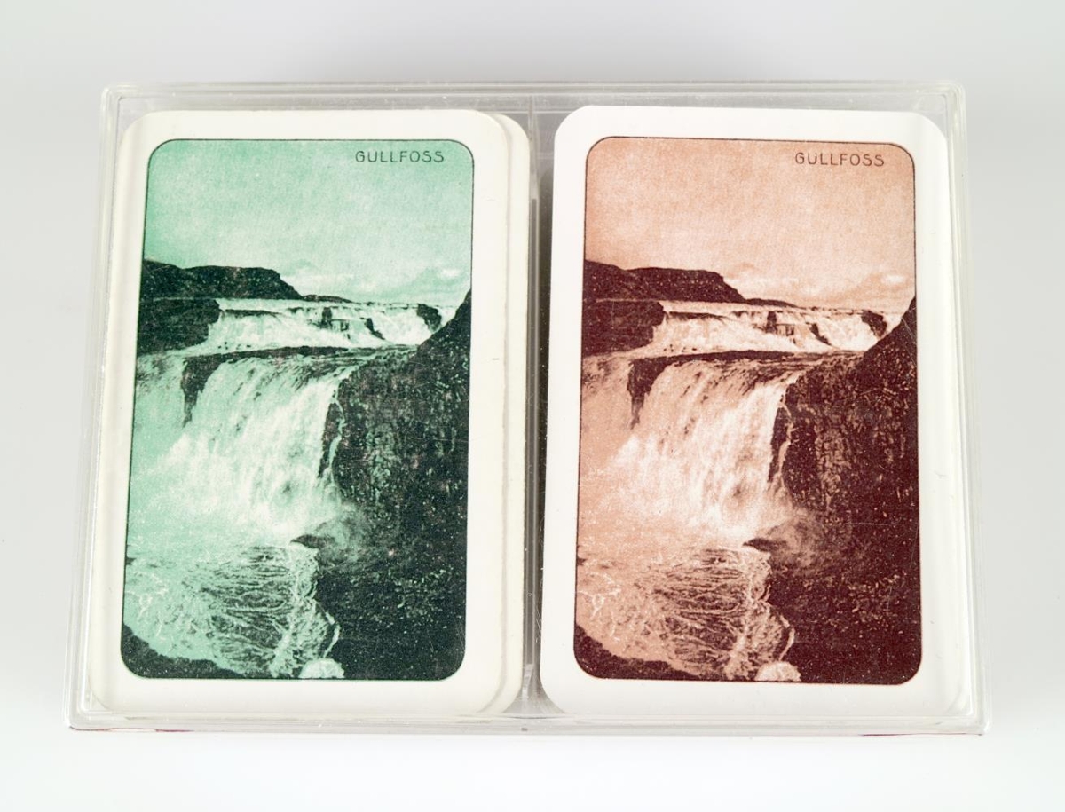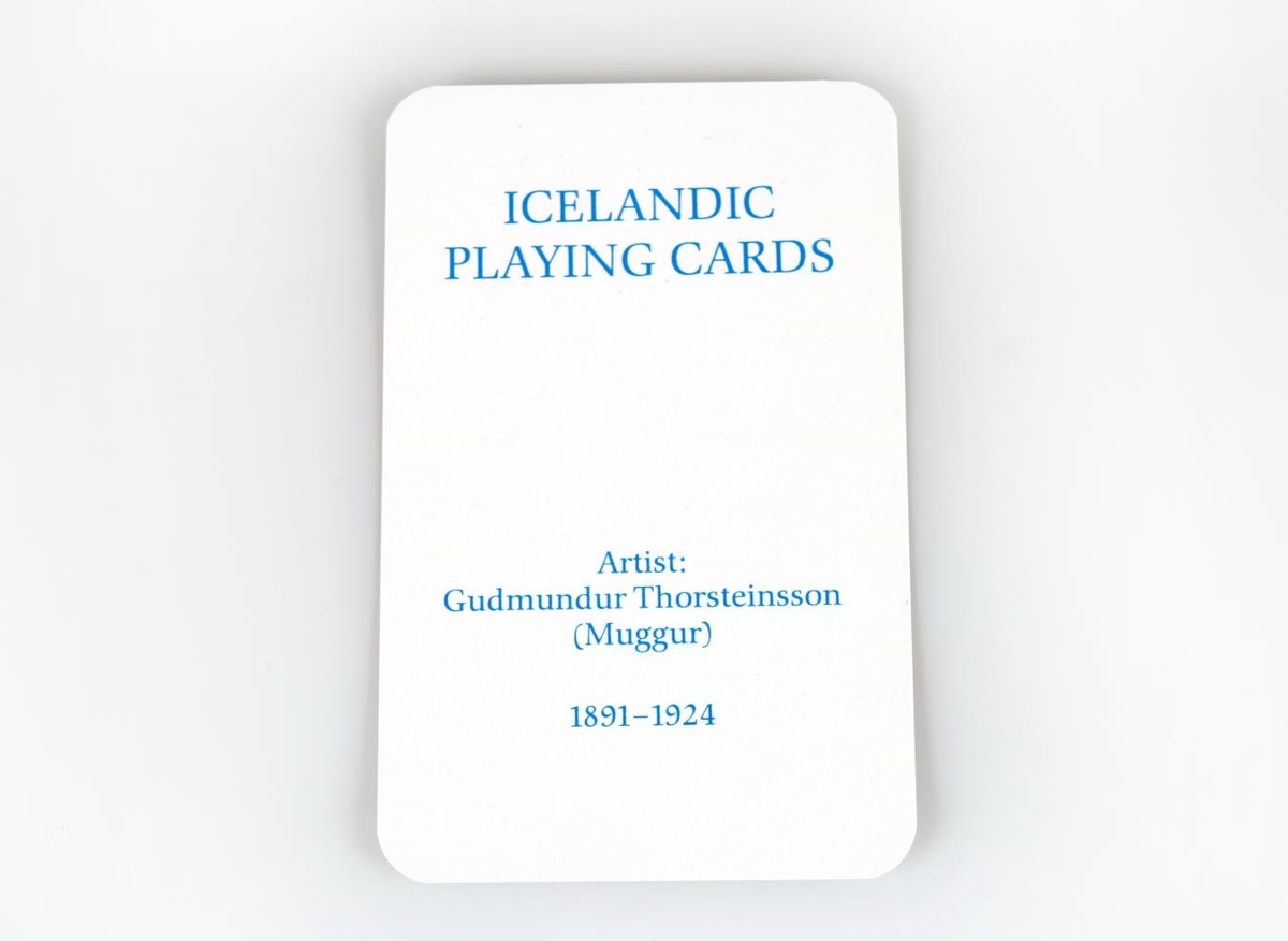 Tveir spilastokkar með teikningum eftir Guðmund Thorsteinsson (Mugg). Þetta er eftirprentun frá árinu 1976 en stokkurinn var fyrst framleiddur árið 1922. Stokkarnir eru í öskju úr glæru harðplasti, annar þeirra er ljósbrúnn og hinn ljósgrænn. Á spilunum eru drottningarnar klæddar í íslenska þjóðbúninga. Gosarnir eru sýndir sem vinnumaður, bóndi, sjómaður og stúdent. Ásarnir eru skreyttir með myndum af mismunandi stöðum á Íslandi: Þingvellir-Reykjavík, Snæfellsjökull-Ísafjörður, Goðafoss-Akureyri og Hallormsstaðaskógur-Seyðisfjörður. Á bakhlið spilanna er mynd af Gullfossi. Báðir stokkar eru heilir, í þeim hvorum eru 52 spil, 3 jókerar og eitt spjald með upplýsingum um spilin.