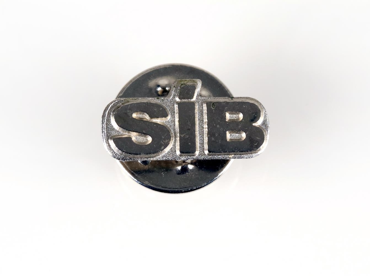 Barmmerki, SÍB (Samband íslenskra bankamanna). Lítið silfurlitað barmmerki með upphleyptum stöfum. Á merkinu stendur: SÍB. Aftan á merkinu er pinni og hringlaga festing til að festa merkið í fatnað.