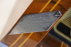 Tæki þettað er gjöf frá rúsneska sendiráðihu til Emils Jónsonar ráðherra árið 1958. Silfur skjöldur með rúsneskri áletrun er framan á tækinu.