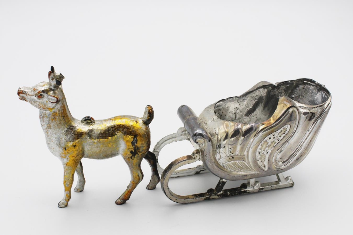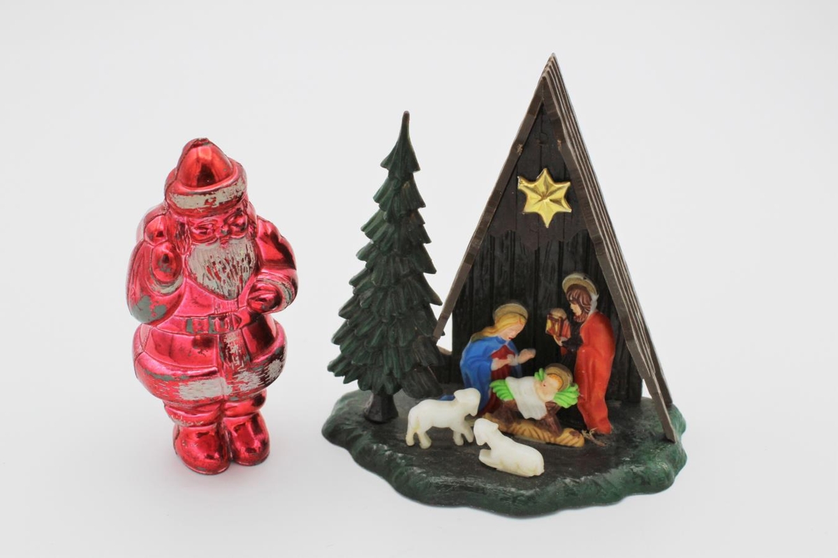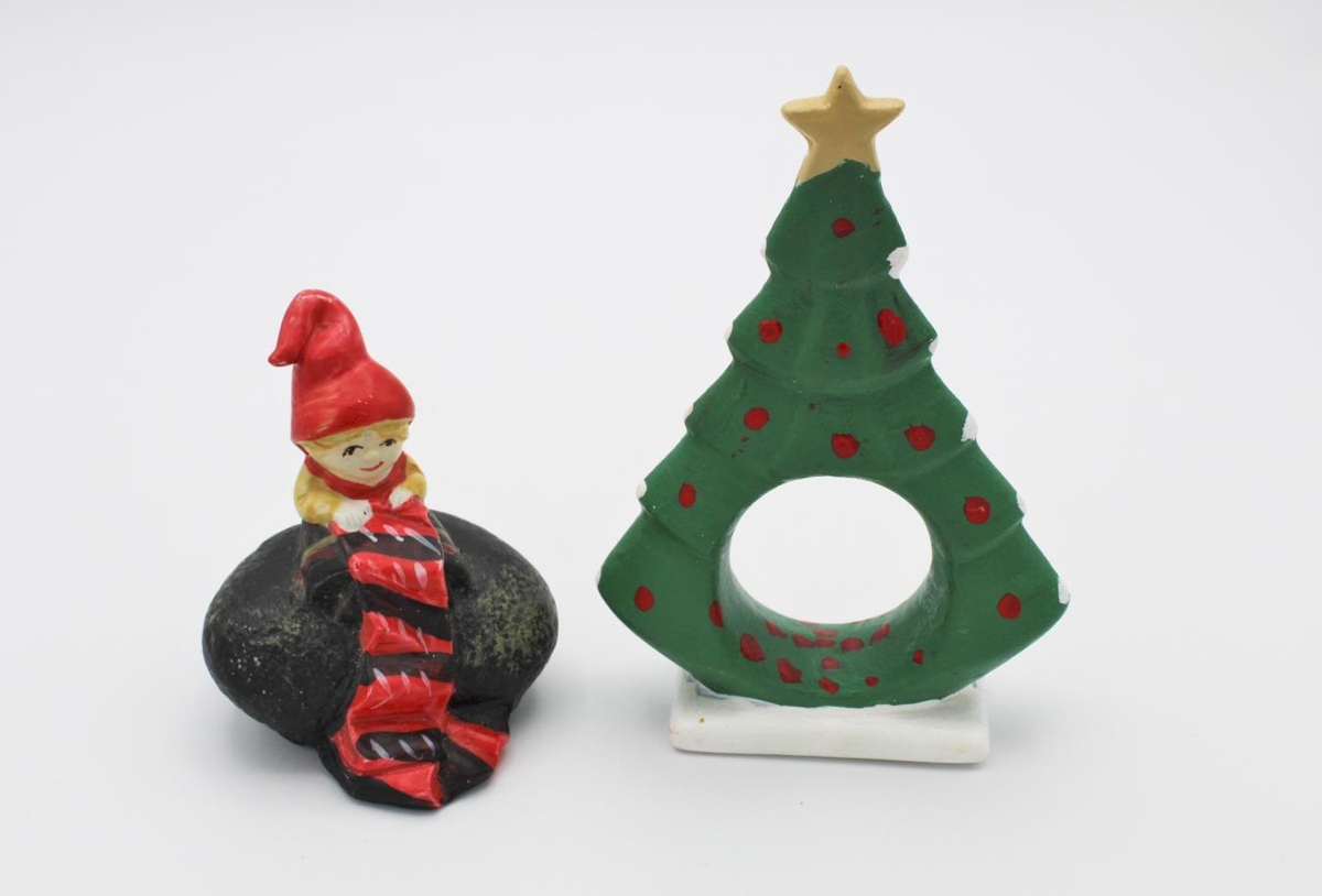 Jólaskraut 9 smáhlutir. Geymt í hvítum konfektkassa sem hlutirnir voru í þegar þeir bárust safninu.