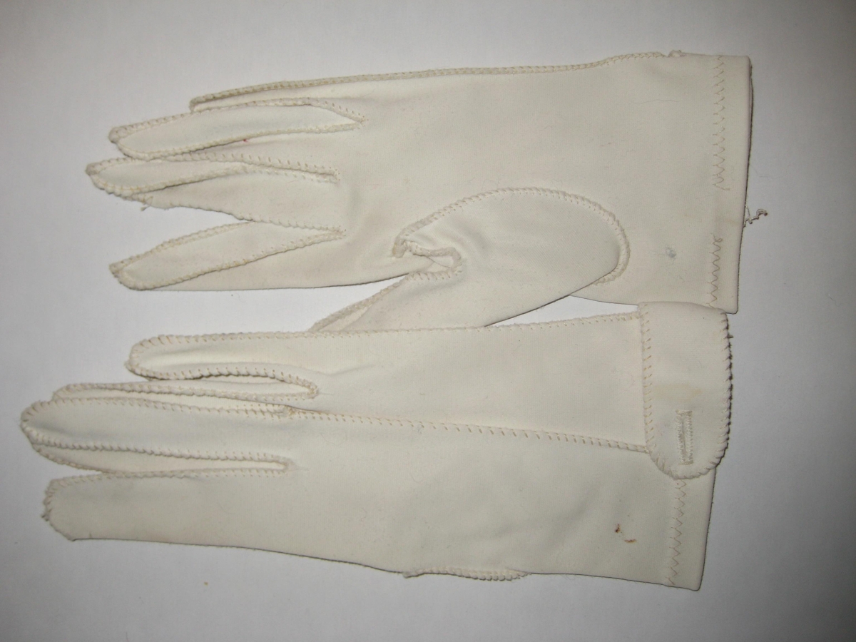 Hvítir kvennmannshanskar fíngerðir. Með utan á liggjandi saumum.