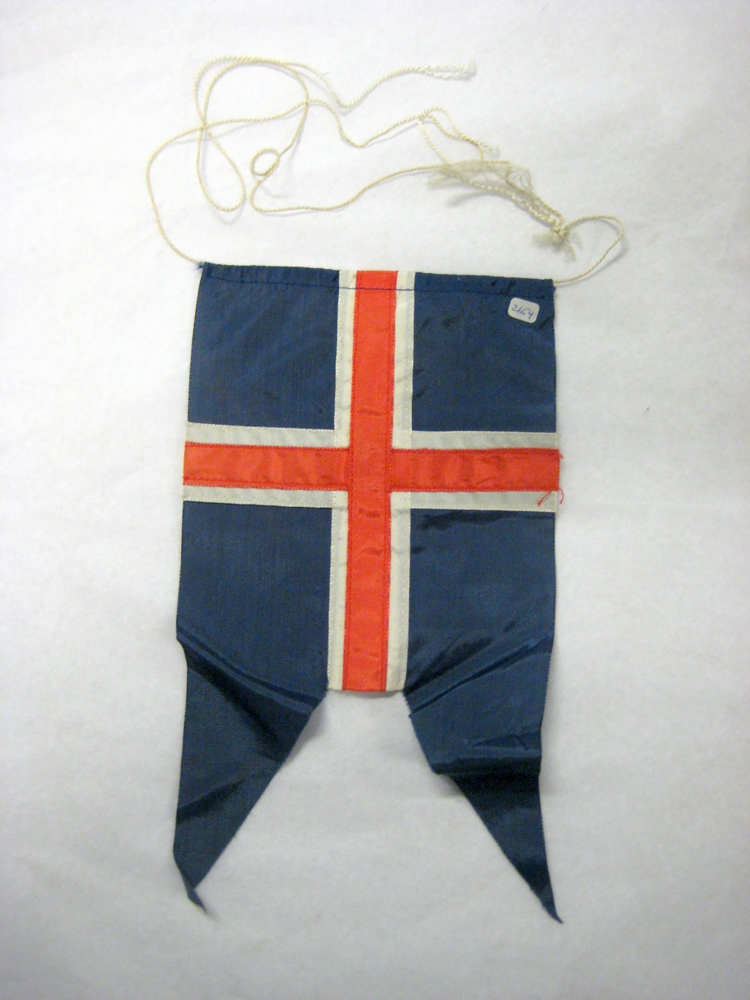 Gaf annan borðfána sumarið 2003, ómerktur óskráður og er í glugga eldhúss