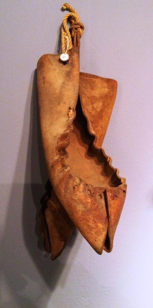 Sjóskór, voru brúkaðir í Þorlákshöfn. Úr búi Jóns í Holti á Stokkseyri, föður gefanda. Fæddur árið 1849 og dáinn 1939. Jón fluttist að Holti 1889.