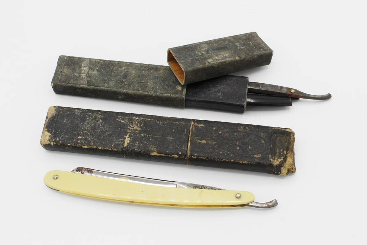 7,5 sm blaði merkt Diamant. Hinn með gulu skafti 7,0 sm blaði merkt Omega
