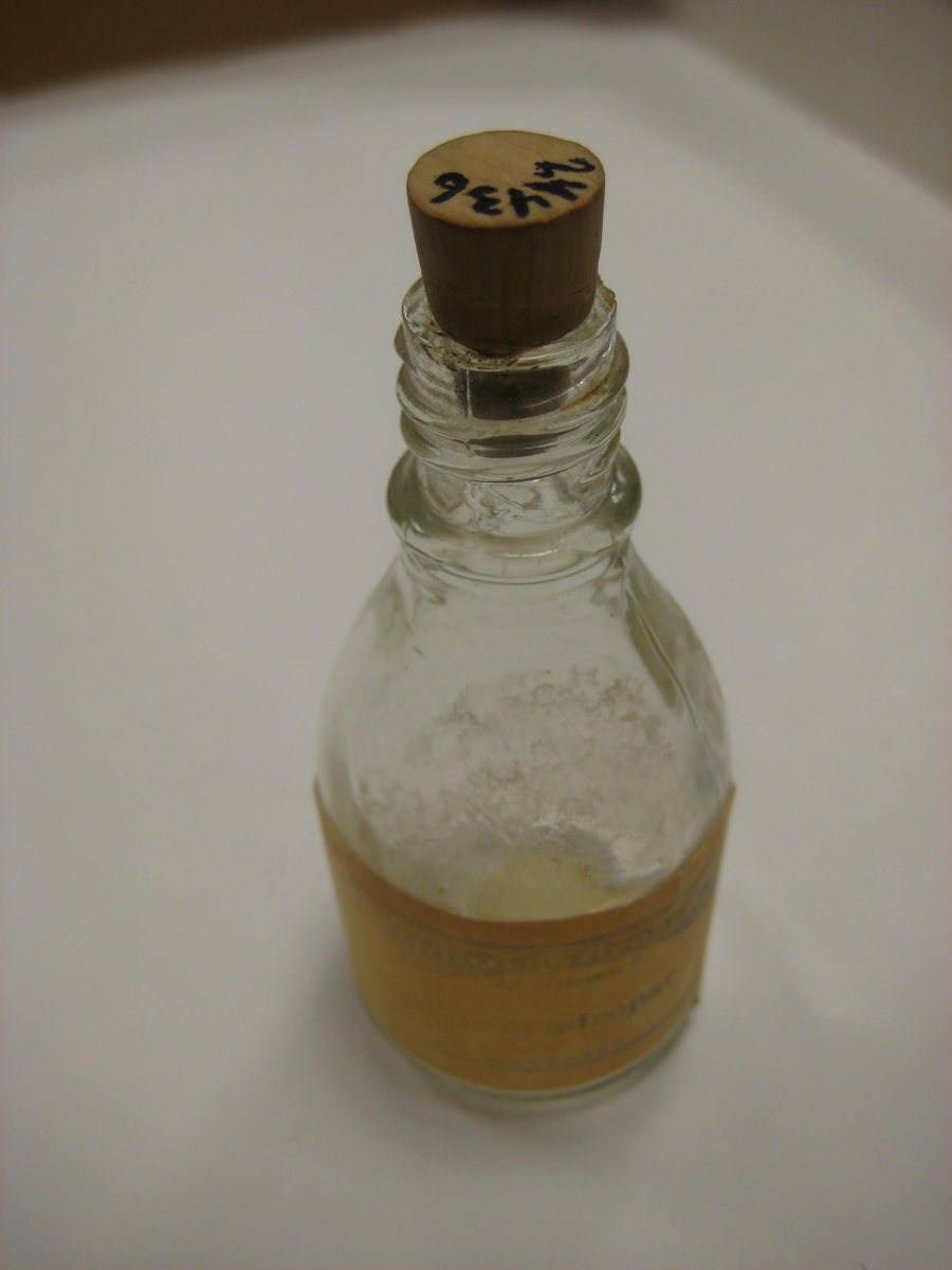 Ávaxtahlaup og kamfórudropar. Ávaxtahlaup, tvær tegundir og kamfórudropar í flösku. 2443: MINUTE GELATIN, rauður pakki með þremur skömmtum. 2443 A: MELATIN Gele og marmelade paa 10 minutter. Gulur pakki með einum skammti og leiðbeiningum. 2443 B: Kamfórudropar frá Ingólfsapoteki, með korktappa. Úr dánarbúi Ólafar D. Árnadóttur sem lést sumarið 1993, móðir gefanda.