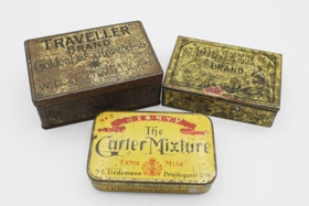 Box. Sígarrettubox box undan 50 sígarrettum. Utan á boxinu stendur m.a.: "B.D.V. Extra Mild - Godfrey Phillips LTD. London, Endgland.". 3648 A: Box undan píputóbaki. "Old English - Curve Cut - Pipe Tobacco - Choice Quality". 9,0 x 8,1 x 5,0. Hefur upphaflega verið rautt að lit en boxið er mjög ,,veðrað". 3648 B: "The Carter Mixture - Extra Mild - J.L. Tiedemann - Privilegeret 1778". Gul dós. 3648 C: "Pioneer Brand - Golden Flake Cavendish". Gulllituð dós 3648 D: "Traveller Brand - Golden Fladed Cavendish". Gullituð dós, ,,veðruð". Tilheyrir safnheild - ,,Laujabúð".