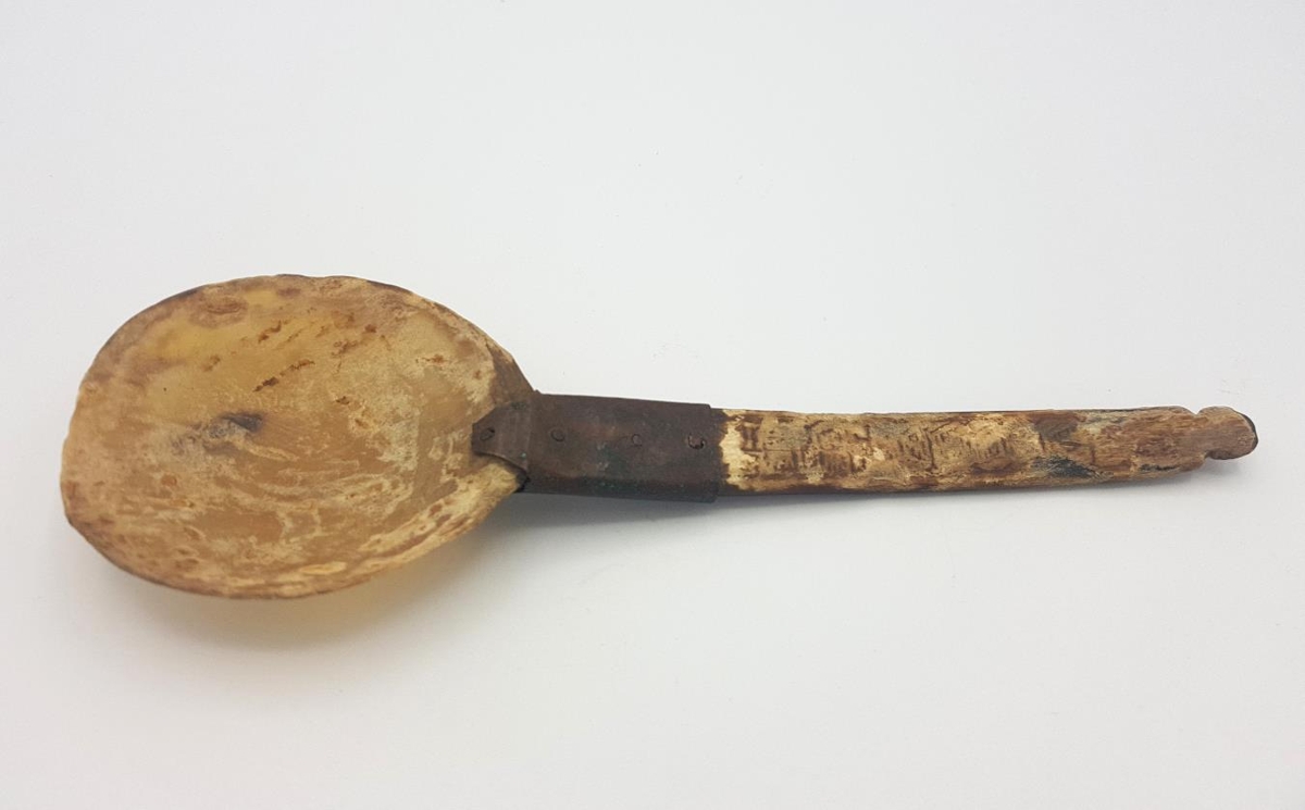 Hornspónn gamall, spengdur, frá Skálabrekku í Þingvallasveit.