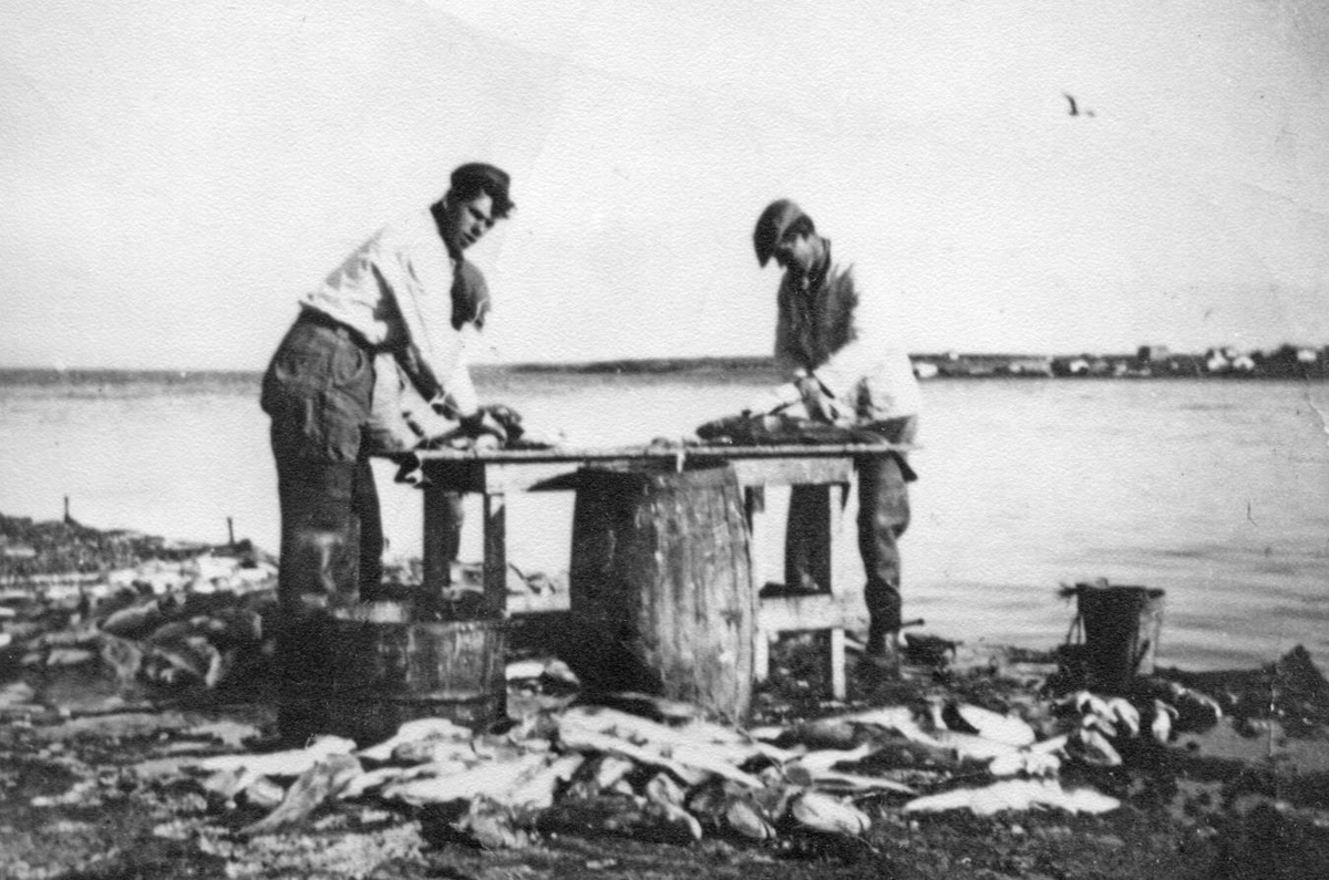 Fiskaðgerð, bræðurnir Tryggvi Einarsson frá Bjarnastöðum í Garði og Guðmundur Einarsson, bjó í Melbæ í Garði.