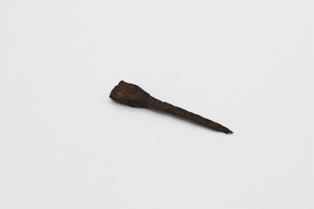 Seilarnál og hóffjöður. Seilarnál úr járni. 3448 A: Hóffjöður ryðguð. Frá Skeggjastöðum í Hraungerðishreppi.