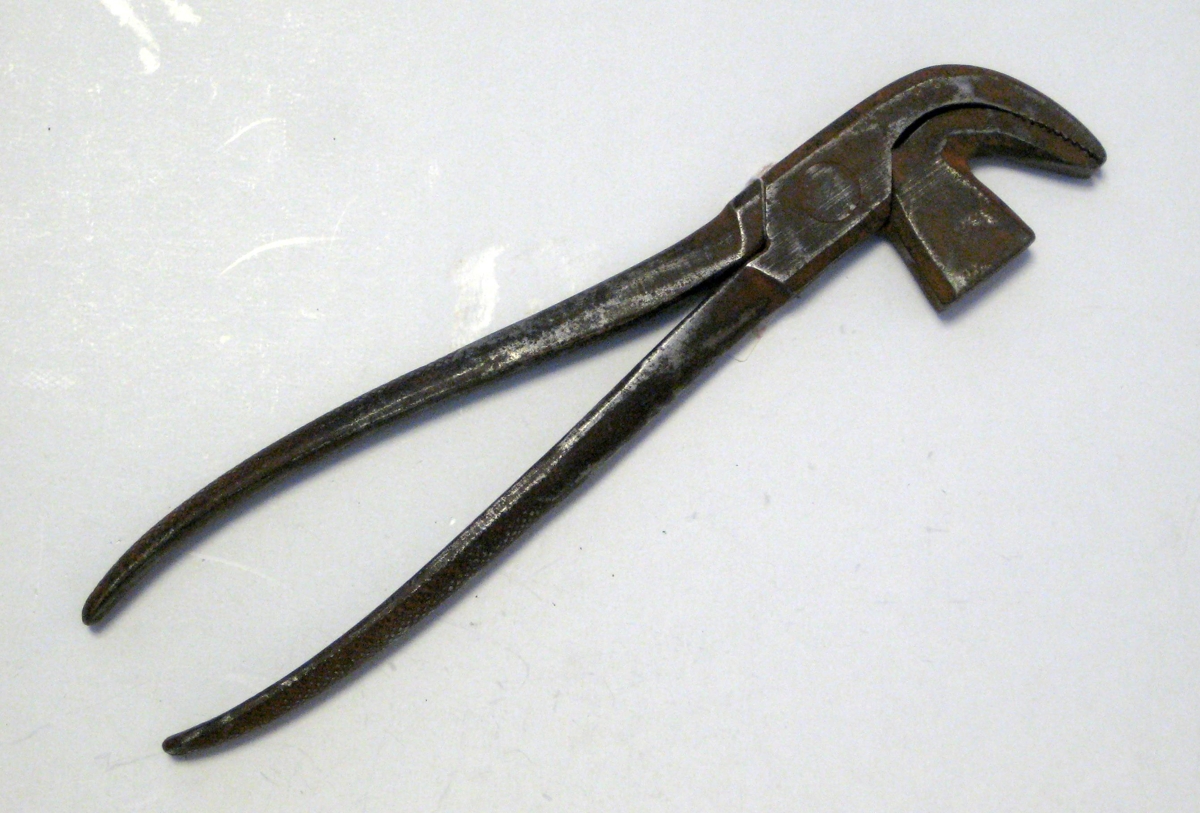 Söðlasmíðaverkfæri: Strekkitöng til að strekkja borða, t.d. í hnakka. Goggurinn er boginn, arnarlaga. Notað af Ólafi Sigurðssyni söðlasmið fyrst á Eyrarbakka og síðan á Selfossi. Gefið af syni hans Guðmundi Geir og börnum hans og Elínborgar Sigurðardóttur, Erlu, Ólafi og Ingunni.