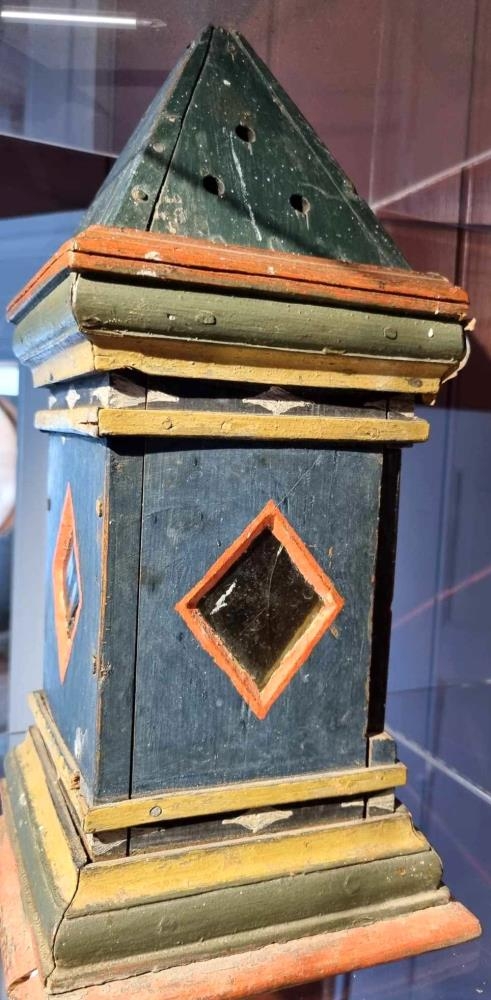 Ljósker, málað, með renniloki, á einni hliðinni en litlum gluggum á hinum. Ljóskerið mun jafngamalt Miðdalskirkju og afhent af Magnúsi Böðvarssyni kirkjubónda úr dóti uppi á kirkjulofti.