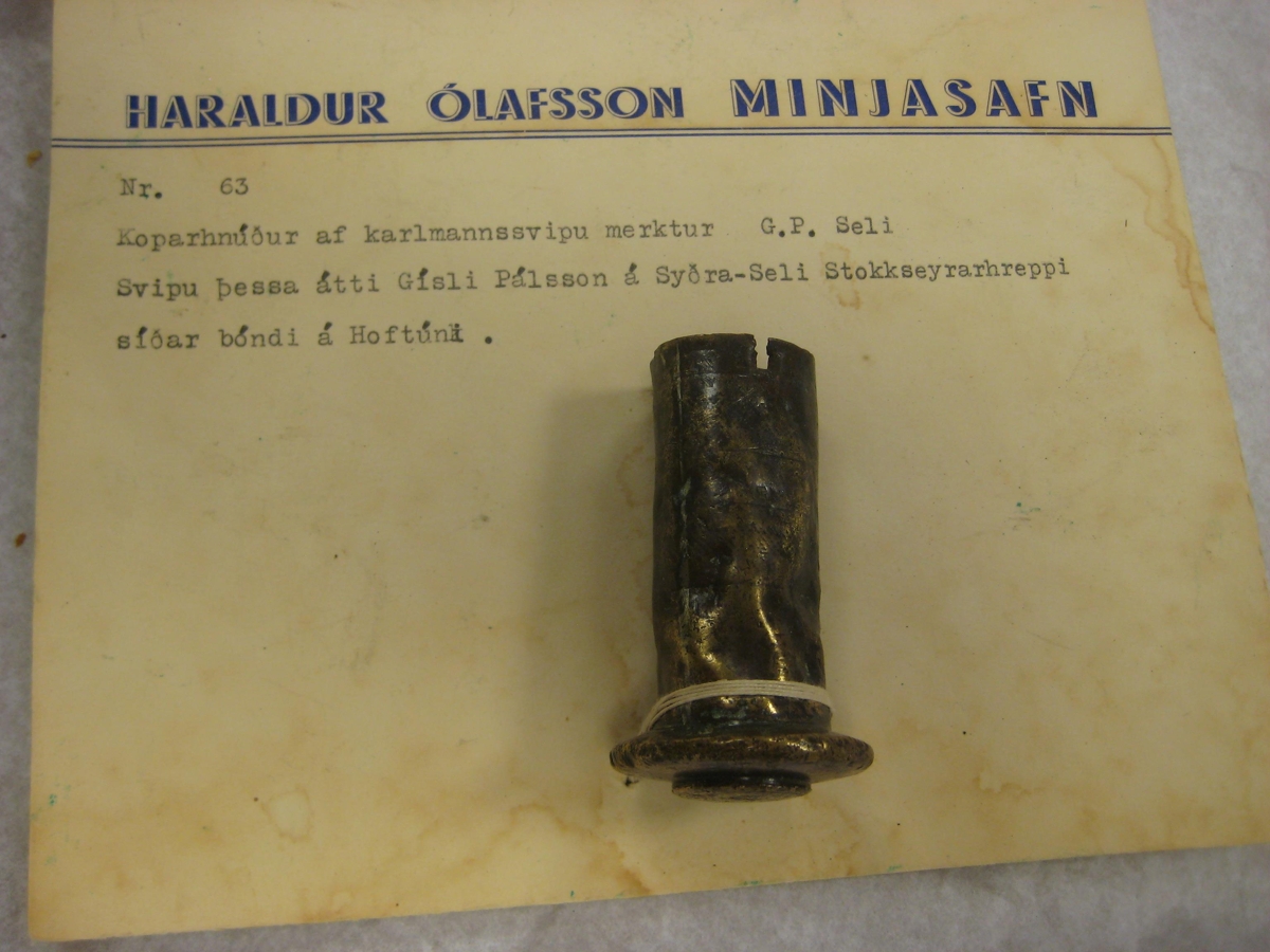 merktur G.P. Seli. Fundin á Syðra-Seli af Páli Júníusi Pálssyni árið 1974.