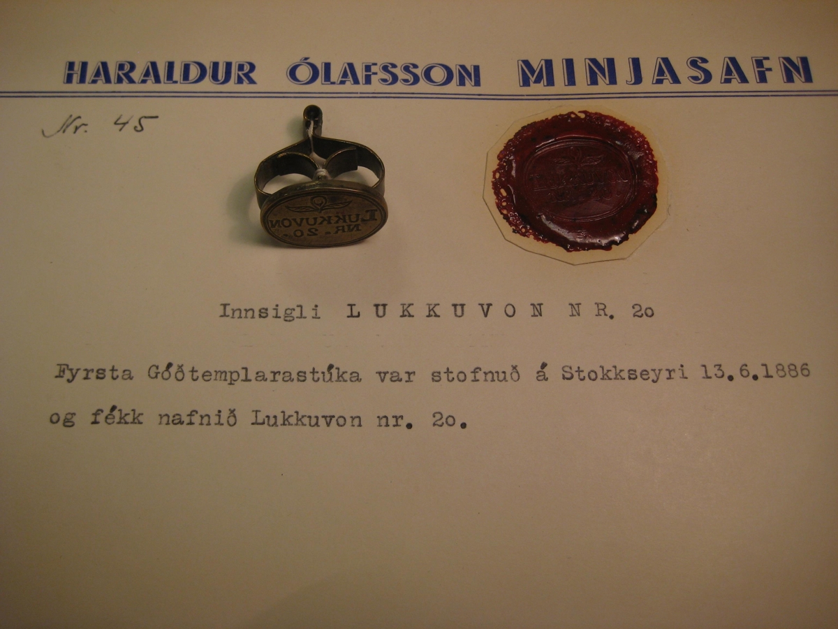Innsiglið er úr kopar. Fyrsta Góðtemplarastúkan