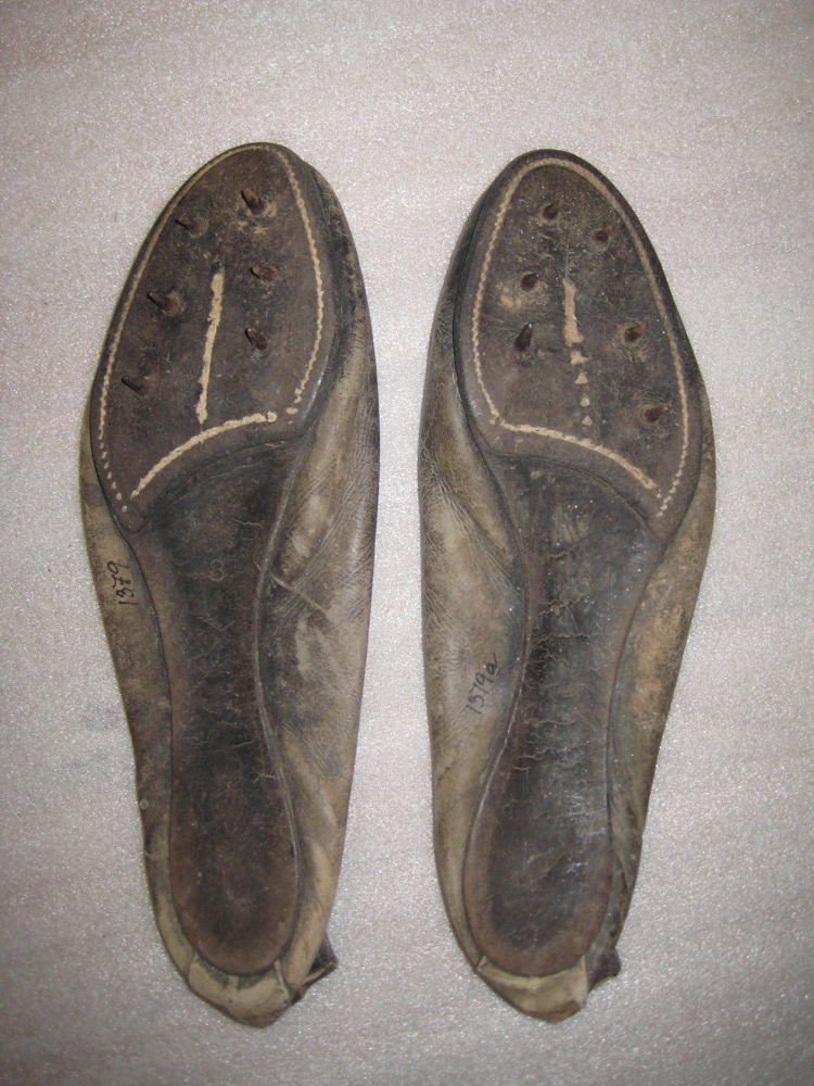 Skór. Gaddaskór sem Hinrik notaði á yngri árum í fótbolta, en hann keppti í liði Héraðssambandsins Skarphéðins.