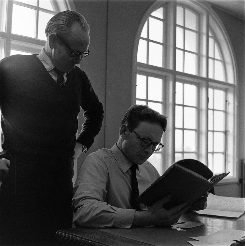 Hverfisgata. Landsbókasafnið. Ólafur Halldórsson, Sigfús Andrésson og Aðalgeir Kristjánsson.