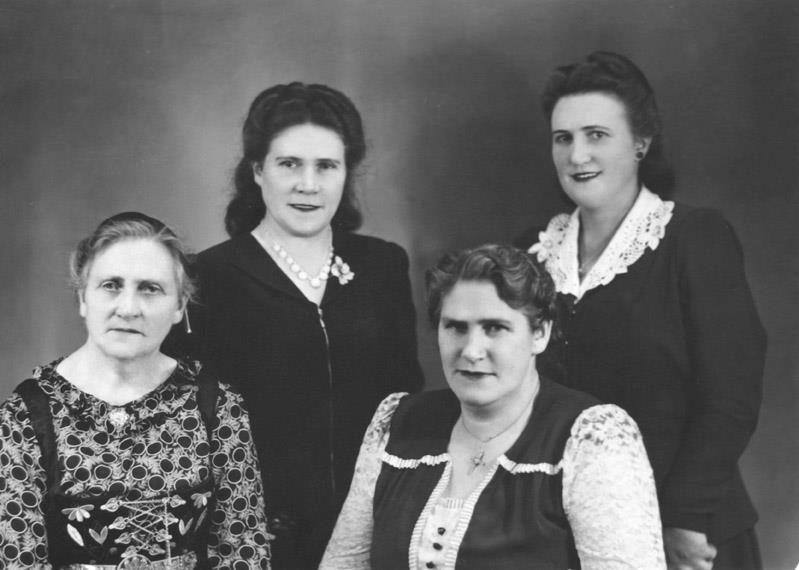 Mæðgurnar frá Réttarholti í Garði. Sitja frá vinstri: Guðrún Guðmundsdóttir og Þóranna Guðjónsdóttir. Standa frá vinstri: Halldóra og Svanhildur Ólafía Guðjónsdætur. Myndin líklega tekin árið 1949.