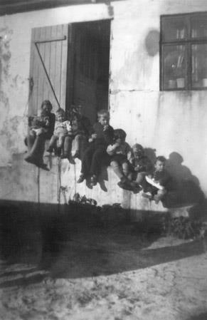 Frændsystkinin frá Réttarholti í Garði njóta góða veðursins á tröppunum í Réttarholti árið 1943 eða 1944. Þarna eru m.a. bræðurnir Eiður Svanberg og Guðmundur Brynjar Guðnasynir, Rúnar Guðmundsson í Réttarholti og Sveinn Björnsson frá Sunnuhvoli í Garði.