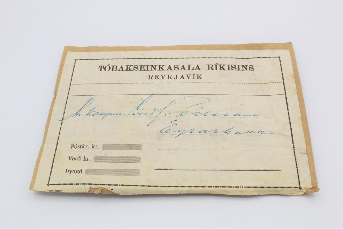 um vörur. Á merkinu stendur: ,,Tóbakseinkasala Ríkisins Reykjavík".