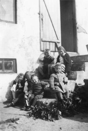 Barnabörn hjónanna í Réttarholti í Garði, Guðjóns Guðmundssonar og Guðrúnar Guðmudnsdóttir, á tröppunum í Réttarholti. Á myndinni eru Fremst: Ingigerður Þórey, Eiður Svanberg og Guðmundur Brynjar Guðnabörn þá Sveinn Ragnar Björnsson og efst Rúnar Guðmundsson og Guðný Jóhannsdóttir.