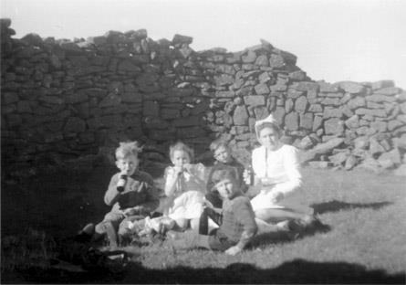 Fjölskyldan frá Réttarholti í Garði í lautarferð í Árnarétt um árið 1947. Frá vinstri: Rúnar Guðmundsson, Ingigerður Guðnadóttir, Eiður Svanberg Guðnason, Guðmundur Brynjar Guðnason og Svanhildur Ólafía Guðjónsdóttir.